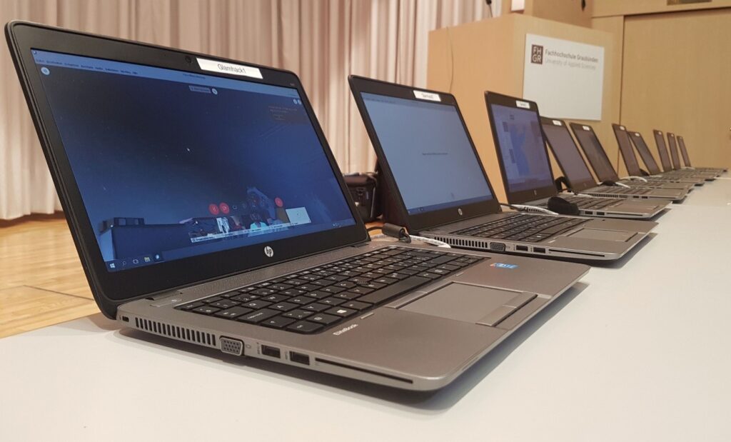 Wirklich denkwürdig waren die besonderen Umstände der diesjährigen Ausgabe, denn der GLAMhack 2020 wurde – in Zeichen von Covid 19 – online durchgeführt. Für die IT-affinen Teilnehmenden war der Wechsel in die digitale Sphäre wohl gar nicht so ungewohnt, aber die Gastgeber in Chur stellte der Event vor eine technische Herausforderung. Um die Veranstaltung attraktiv zu gestalten, wurde eine Art «Blended Reality-Szenario» aufgebaut, als dessen Schaltzentrale die Aula der ansonsten menschenleeren FHGR diente. Mit einem kleinen, engagierten Team wurde das Rahmenprogramm in Chur durchgeführt, während sich die Teilnehmenden in virtuellen Räumen bewegen konnten. Möglich war dies dank einer ganzen Batterie von Computern, die zwei Tage auf Hochtouren liefen, und deren Aktivitäten von einem Regiepult aus angesteuert und aufgezeichnet wurden: Die Stromrechnung der FHGR wird für Juni entsprechend hoch ausfallen, aber das Ergebnis kann sich sehen lassen: Fast 19 Stunden Live-Streaming, die man sich – wenn man sehr viel Zeit hat – auf dem Youtube-Kanal der FHGR ansehen kann. Für einen raschen und spannenden Einblick empfiehlt sich jedoch das Video «GLAMhack 2020 – Aftermovie», welches von Studierenden des Instituts für Multimedia Production gedreht wurde.