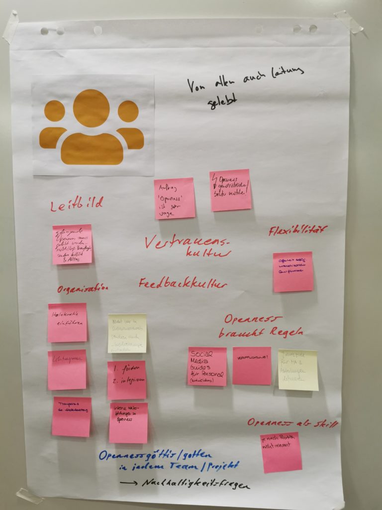 Doch wie es im Arbeitsalltag so ist, wurden zwar einige praktische Dinge umgesetzt, doch das Thema Openness geriet aufgrund anderer Aufgaben in den Hintergrund. Daher ist neben der Definition von Zielen und Strategien zur Umsetzung von Openness besonders die Planung einer längerfristigen Verankerung von Openness im Berufsalltag wichtig.