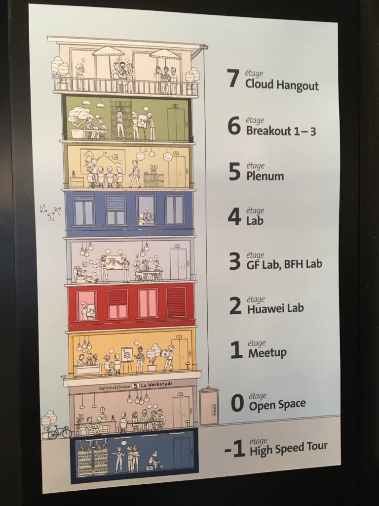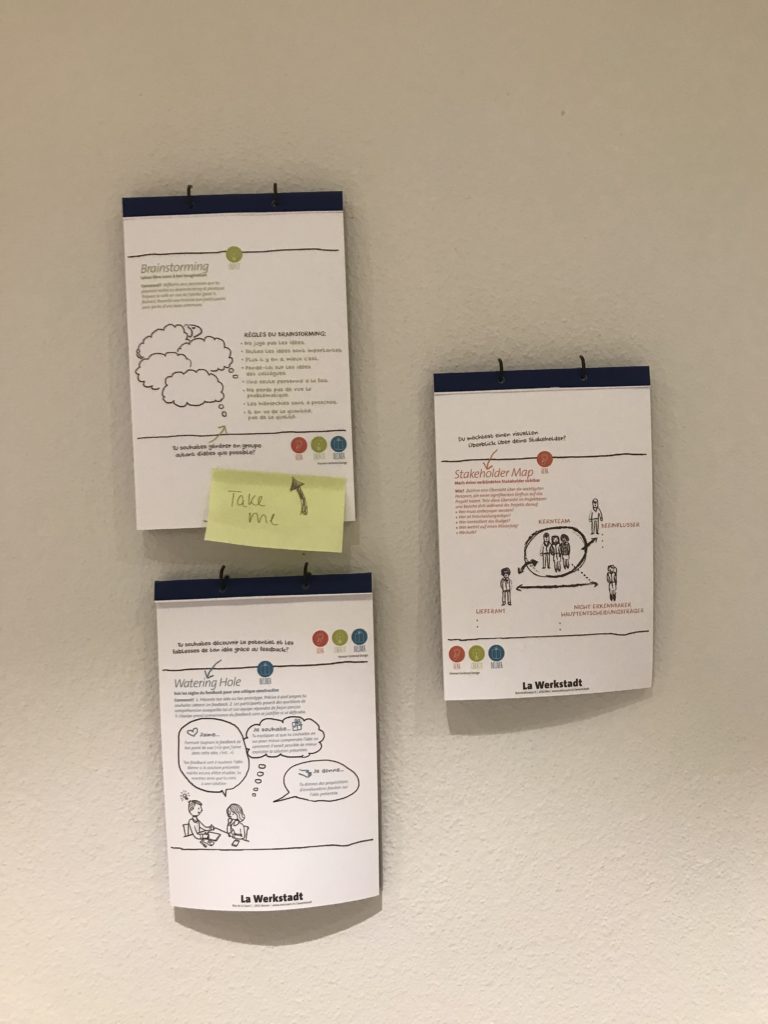 Die oberen Stockwerde sind von der Philosophie hinter der Methode des Design Thinkings geprägt. Design Thinking dürfte zumindest einigen Mitgliedern der IG WBS bereits bekannt sein (passwortgeschützt). La Werkstadt bietet Trainings in Design Thinking an für Firmen oder andere Gruppen.