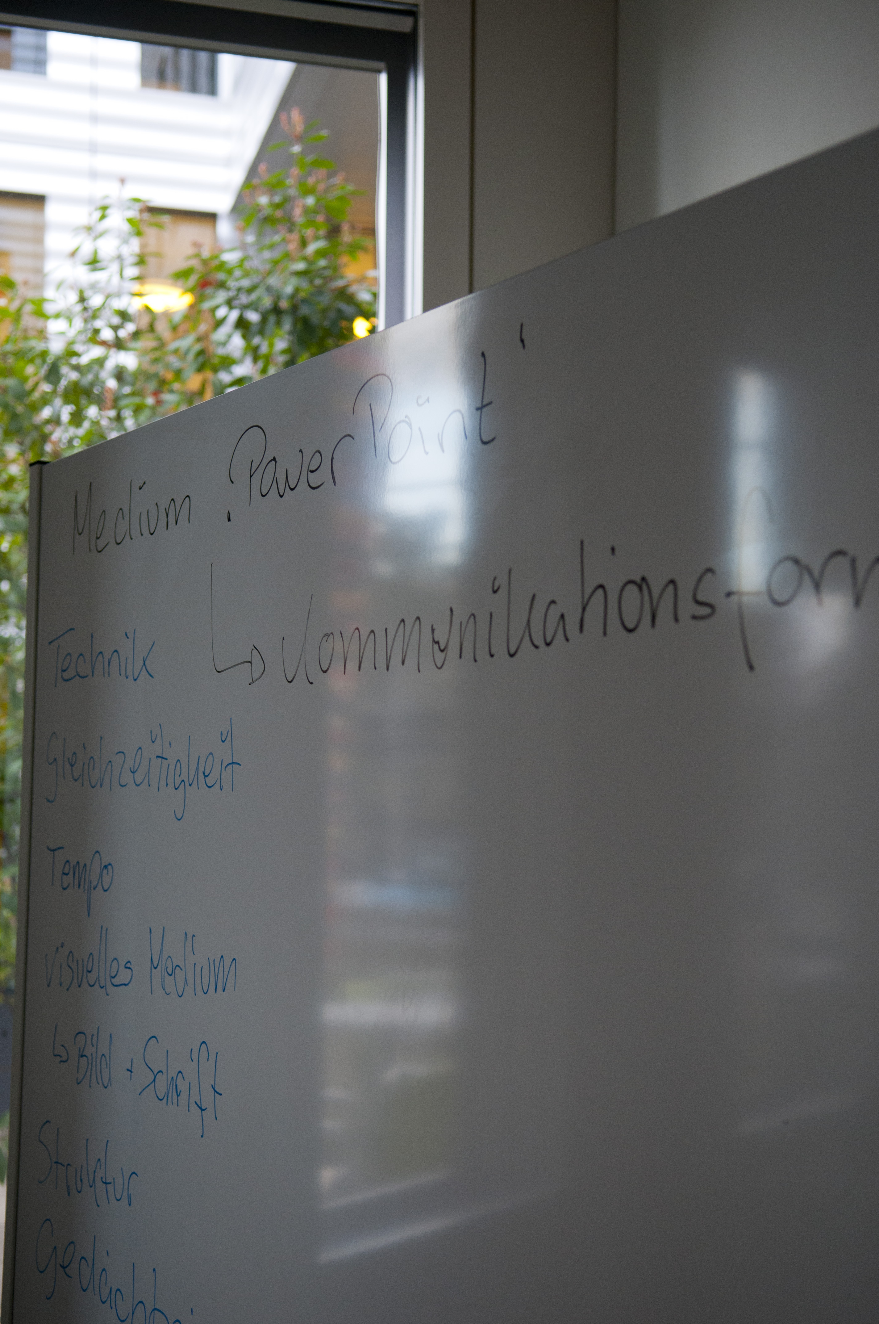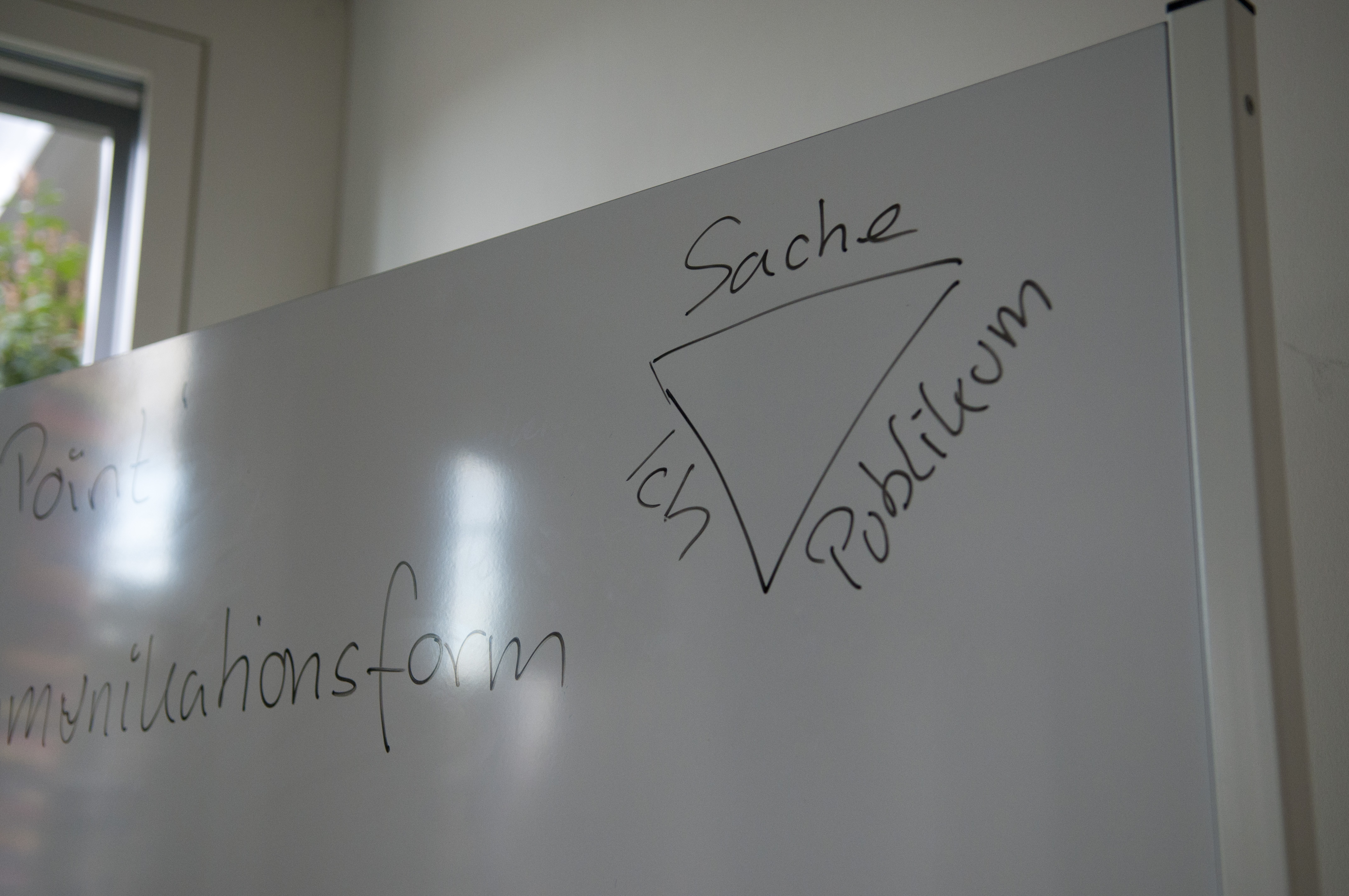 Das schon so oft erwähnte Publikum ist für die Gestaltung einer Präsentation ebenfalls entscheidend. Schliesslich ist ein gemeinsames Verständnis der Situation/des Themas nötig, um einen gewissen Sachverhalt oder eine Information vermitteln zu können. Dräger riet entsprechend, weg von der Sachebene (Fachwissen) zu argumentieren und mehr hin zum Publikum zu denken und auch Formulierungen und Ausdrücke entsprechend zu wählen.